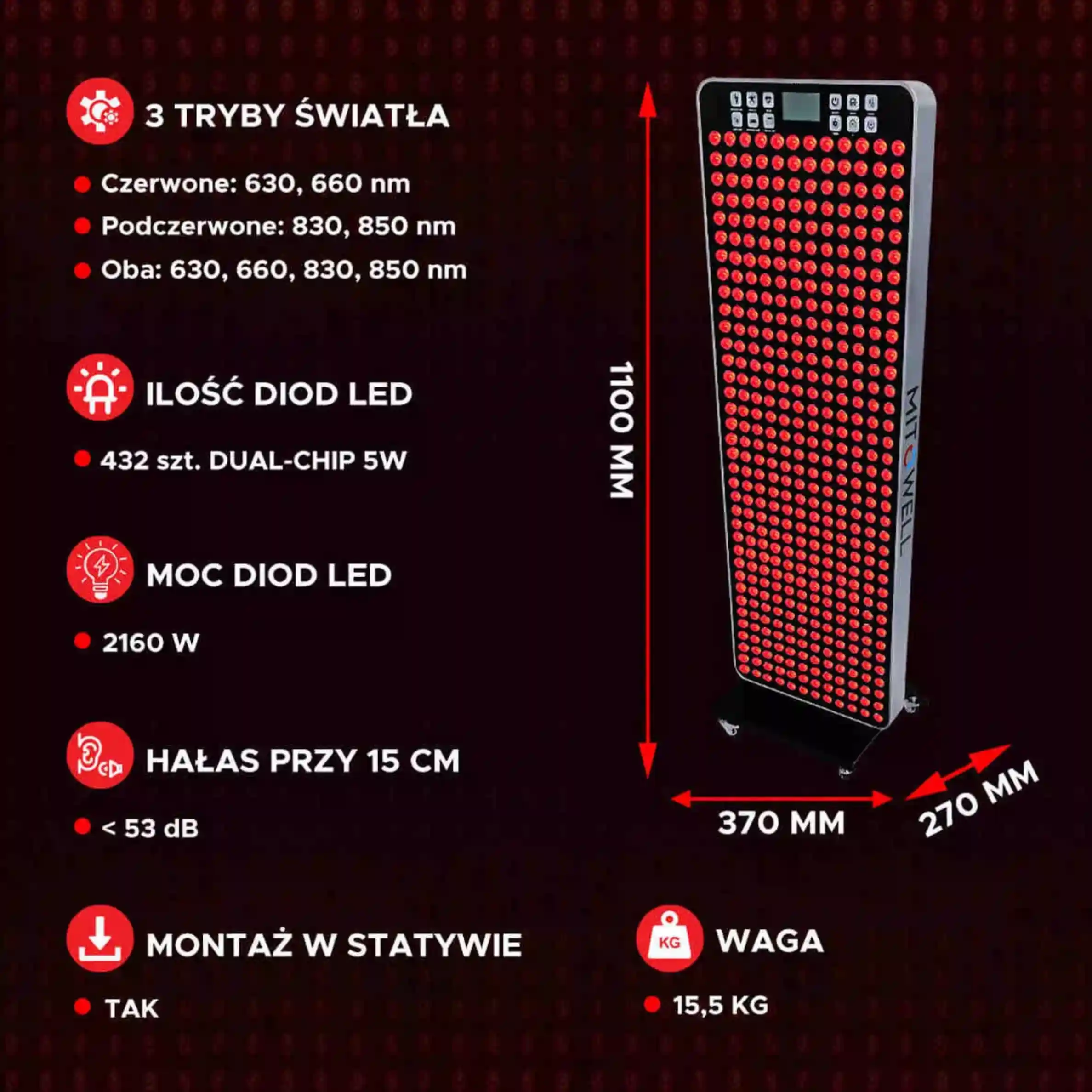 Lampa LED do terapii światłem czerwonym MW2000 PRO